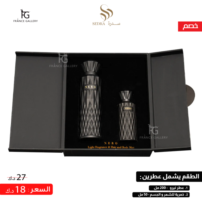 البوكس يشمل عطر نيرو + خمريه نيرو ( للجسم والشعر ) من سدرا – الحجم 200 مل + 50 مل